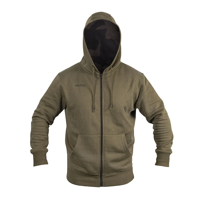 A Khaki Green Hoodie featuring our unique Avid Carp Distortion Camo styling on the inner hood. This luxurious zipper style hoody is a perfect garment to layer with other clothing items in cooler weather or as an outer layer during the warmer months. High quality elasticated cuffs and waist band make for a classy garment that looks equally at home on or off the bank.
