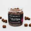Through much trial and tribulation, we have managed to incorporate the optimum levels of liquid food used in our freezer baits and combine it with our wafter mix! All this together with slightly elevated flavour levels make the Half Tones a fantastic target hook bait, either fished over matching freebies or on their own. They come in a 10mm x 15mm dumbell shape and each tub contains a mixture of fluoro white and half toned pink hookbaits. As with the other fluoro dumbells in our range they are a firm but spongy structure. These wafters can easily be mounted by piercing or tying onto a hair and can be easily trimmed to suit your favoured pattern/size of hook. As they come they balance a medium gauge size 8 pattern perfectly.