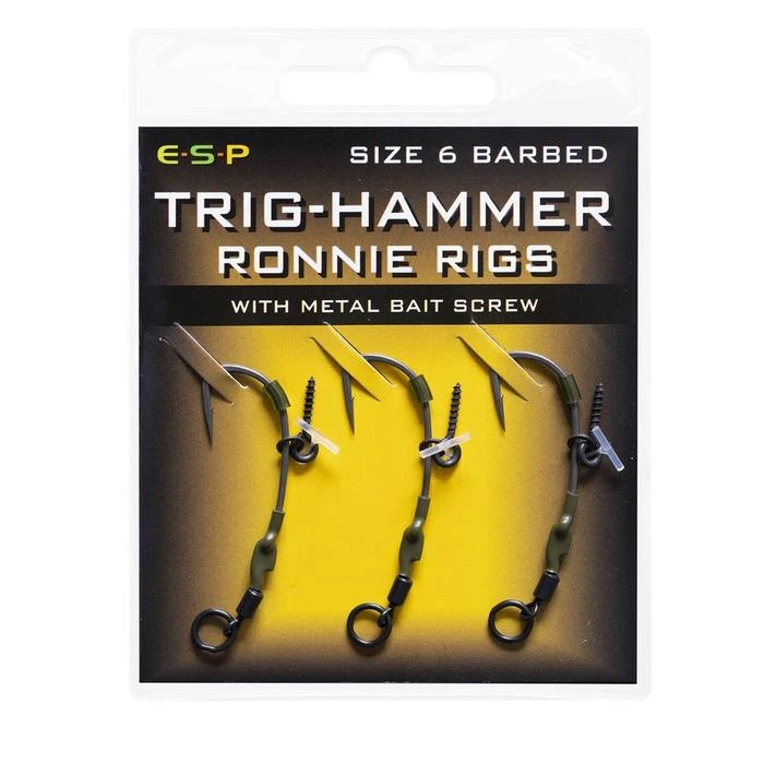 New improved Ronnie’s including the super effective Trig-Hammers. This incredibly sharp long-shank pattern has become established as ‘the’ hook of choice for thousands of anglers when using the Ronnie rig. The subtle, curved shank creates an aggressive angle and along with the needle sharp point, leads to exceptionally good hook holds and a formidable hooked-to-landed ratio.