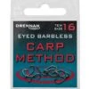 As the name suggests this hook has been designed to be used with stiff materials such as fluorocarbon or Rigidity. It’s out turned eye ensures the stiff material does not reduce the gape of the hook when passed through the eye. This hook lends itself to Hinge Rigs, Chod rigs and Illusion Flurocarbon D-Rigs.