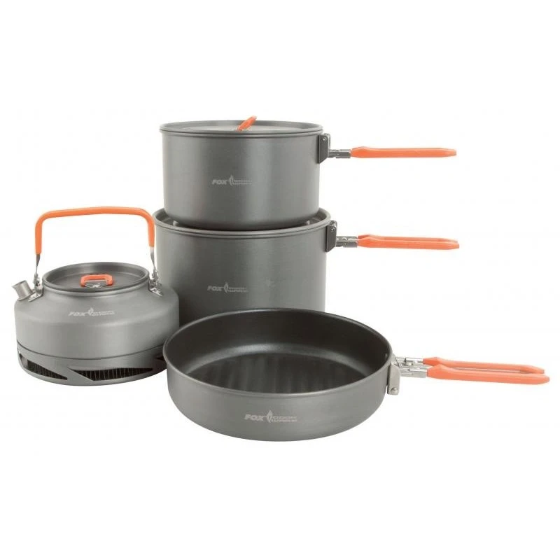 The aluminium construction that comes as standard on almost all of the cookware in our range has been enhanced on this large, four-piece cookware set from Fox, giving additional wall strength to every item, and making this the best choice for a rugged, durable, bankside kitchen that really can travel anywhere.