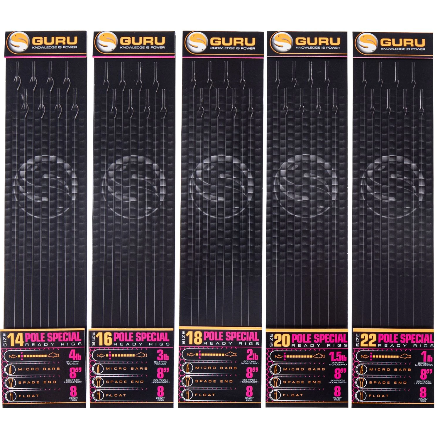 Pre tied and prepared to be use straight out of the packet, this popular range of micro barbed hooks is now available in a range of smaller sizes paired with appropriate breaking strain N-Gauge Pro line. Great if you haven’t got time to prepare your own, or struggle tying up smaller hook sizes! The long shank black nickle wire hooks are particularly useful on clearer commercial venues where the dark colour can give you the edge over traditional silver or copper colours.