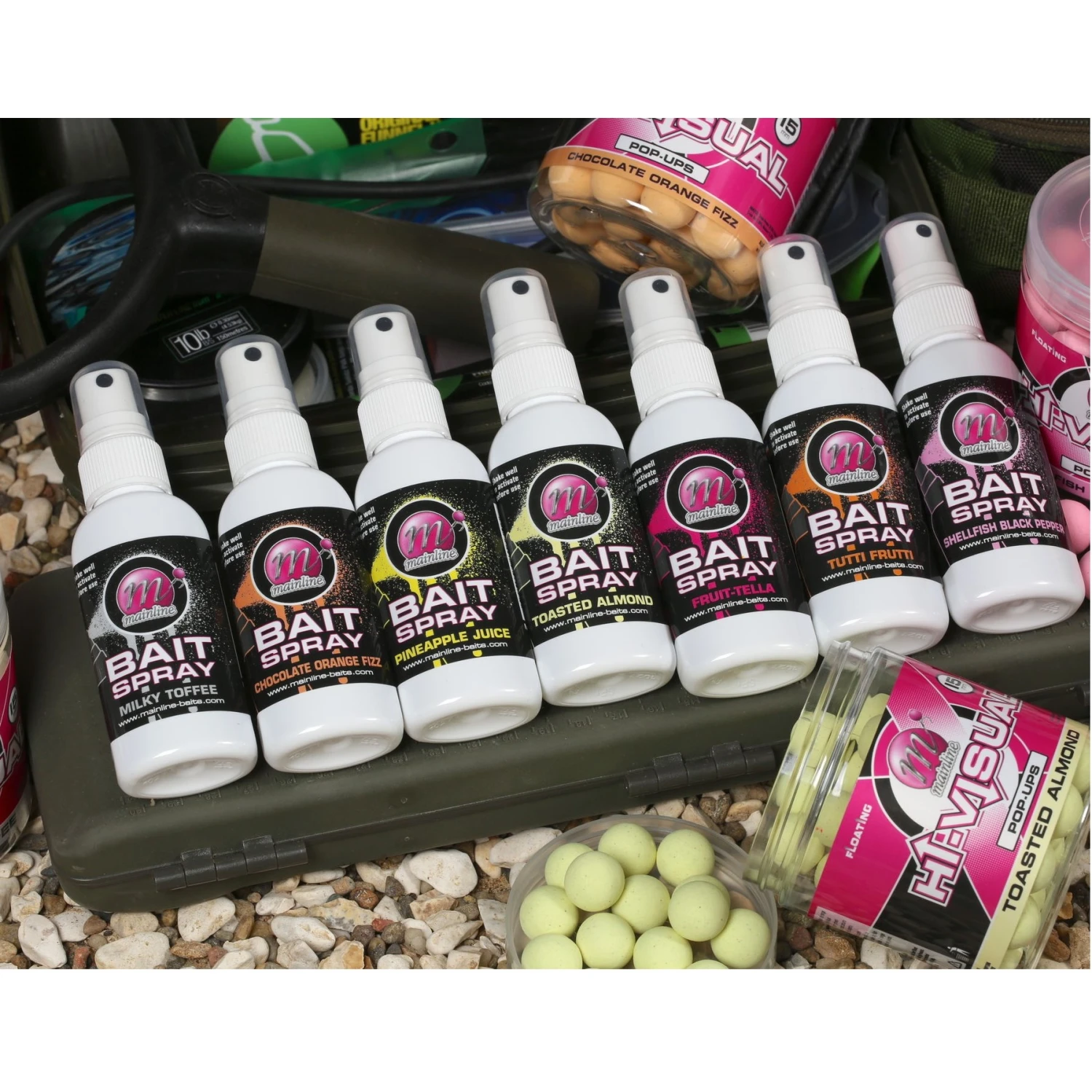 Utilising the exclusive and proven list of flavour blends, sweeteners and liquid attractors used within the Hi-Visual pop-up range we have been able to create a range of Bait Sprays to enhance your hookbait presentation. The choice of flavour labels match our popular range of Hi-Visual pop-ups perfectly, but are suitable for any bait where an instant boost of attraction is desired.