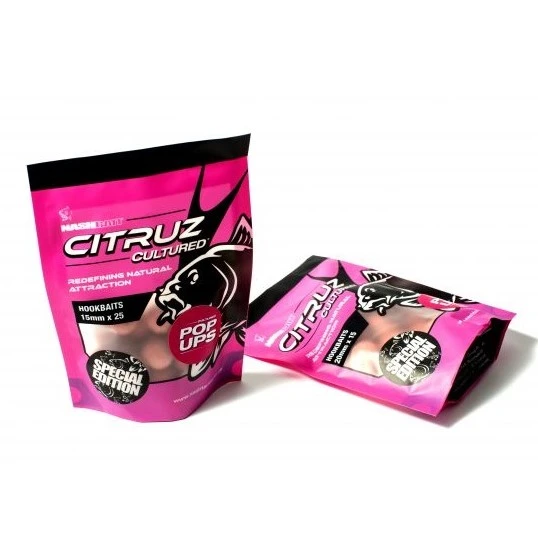 The repeated Nashbait layering and glazing process around core high attract Citruz airballs produces Citruz Cultured® Pop Ups with the unique attraction of the deadly fruit blend in a pink high visual Culture skin that constantly releases nucleotides, amino acids and vitamins and minerals without affecting the balance or buoyancy of the hookbait.