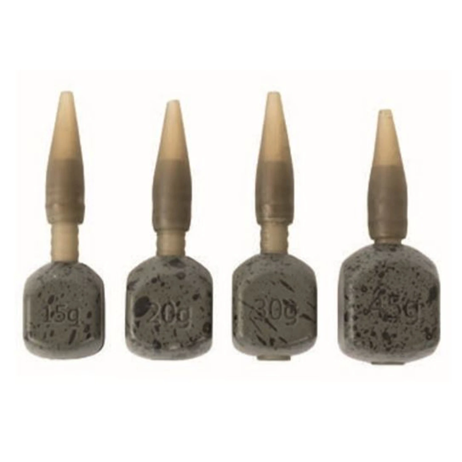 The Inline Match Cubes allow the angler to alternate lead sizes without disassembling the entire rig, and are compatible with the full range of Inter Change System feeders and products. The stem remains on the line allowing the lead to be changed quickly and easily via the centrally located groove. This also ensures your rods are safe when packed away, simply remove your lead and wind in any slack line until the tail rubber rests against the tip ring of your rod. No more leads damaging your rod blank in transit. The Inline Match Cubes cast extremely well and will hold on sloping lake beds making them perfect for casting to far bank features and islands. The inline design also promotes self-hooking as the fish dislodges the heaviest part of the lead first, leading to more fish in the net. Available in 4 different sizes and supplied in packs of 2: 15g, 20g, 30g, 45g.