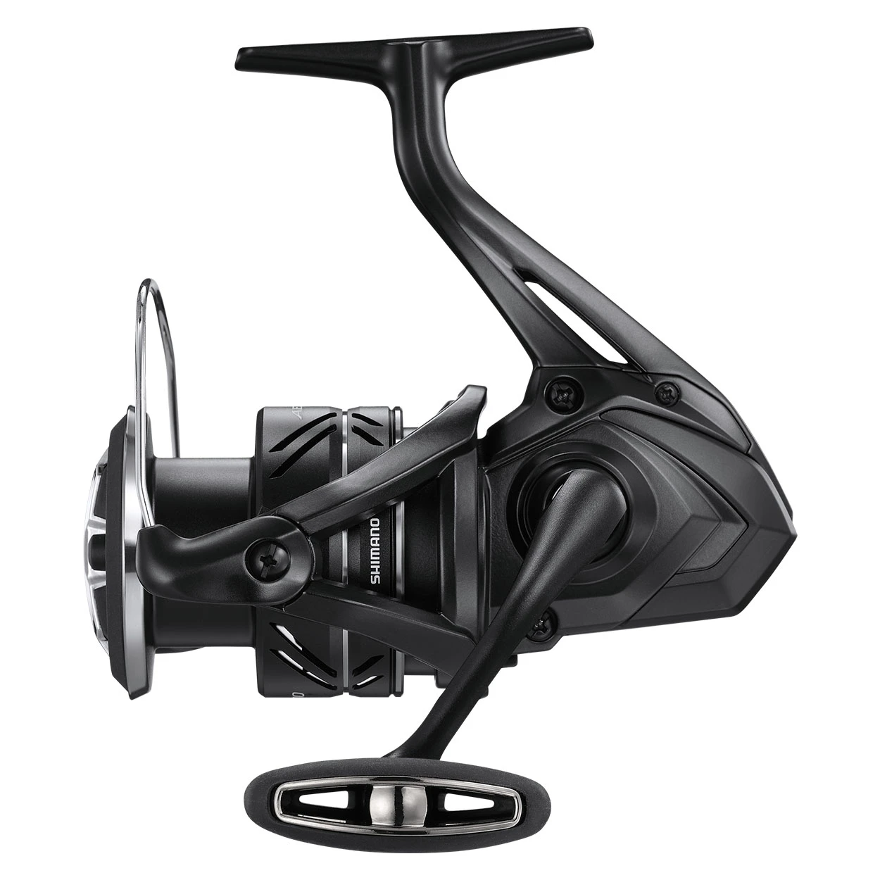 The Aero XR is a technically advanced match and feeder reel containing all of the attributes required by top competition anglers. These include an anti-reverse facility, lightweight CI4+ body and rotor, and advanced HAGANE gearing for peerless performance. If you are a competition angler, or fish using a float or feeder, and want a reel to match your ability, the Aero XR is the solution. All of the reels balance perfectly with Shimano’s best Aero match and feeder rods, giving you an enviable combination that offer a competitive advantage. With their super smooth waterproof drags, and an additional anti-reverse facility, you can play fish directly off the drag when using stronger lines, by back-winding when using fine lines, or by using a combination of both. The smallest 3000 size is perfect for all float fishing and close range feeder fishing, the mid-sized 4000 is ideal for larger float work or mid range feeder fishing and the largest 5000 size is ideal for longer feeder work or mid-range heavy feeder work. With a G-Free CI4+ body and rotor all models are remarkably light, with the 4000 size weighing only 250g, which is a noticeable reduction compared to competitor models of the same size. An additional advantage which you can feel is the precision of the lightweight rotation, which is a result of the CI4+ Rotor construction and the HAGANE Gear, X-SHIP, Silent Drive technology. Additional features include the best AR-C Cold Forged Aluminium spools, (including a spare spool) with a line reducer to reduce the line capacity of the reel. The larger 5000 model has an additional reducer for use with braid when feeder fishing at long range. Power is delivered by a very direct screw in handle and a metal line clip, that is strong and line-safe, reinforces the XR’s feeder fishing pedigree. Visually, the understated ‘stealth-like’ looks of the Aero XR are stunning and combined with the advanced engineering technology can’t fail to inspire your confidence to perform at the highest level.