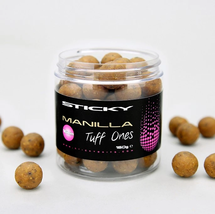 As you may have noticed, Manilla boilies straight from the bag are extremely soluble and break down very quickly, meaning they can only be used as a hookbait for a short period of time – enter the Manilla Tuff Ones. We have no intention of “fixing” the baits straight from the bag, as their extremely soluble nature is in our eyes what makes our baits so effective in the first place!