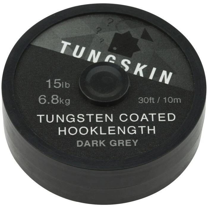 The coating of the heavy hooklength is based on material developed for use by F1 and NATO. It has never been used for the coated fishing line but is the best-coated hooklinks for carp. The tungsten content is only 30% of the overall material mass. The dark grey outer material is easy to strip and reveals a supple braided core.